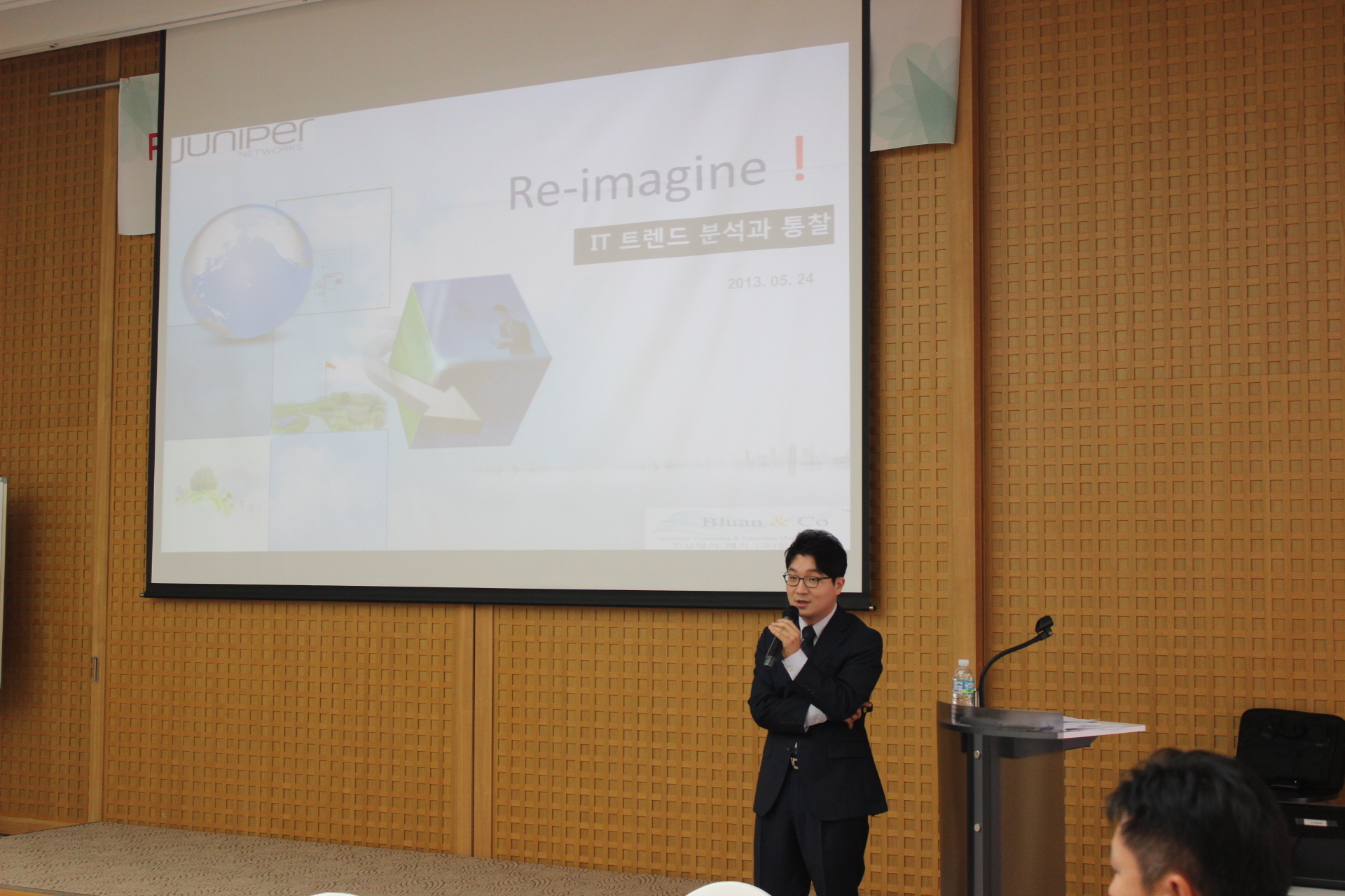 이번 강연은 한국주니퍼네트웍스(주)의 파트너사들 중 엘리트 파트너사를 대상으로 분기마다 실시하는 “Juniper network 2013년 With 교육” 중 임직원 대상 중요 프로그램이며, 바쁘신 와중에 참석하여 자리를 빛내주신 한국주니퍼네트웍스(주) 채기병 대표이사님 이하 임직원여러분께도 다시 한번 더 감사의 말씀을 드립니다.