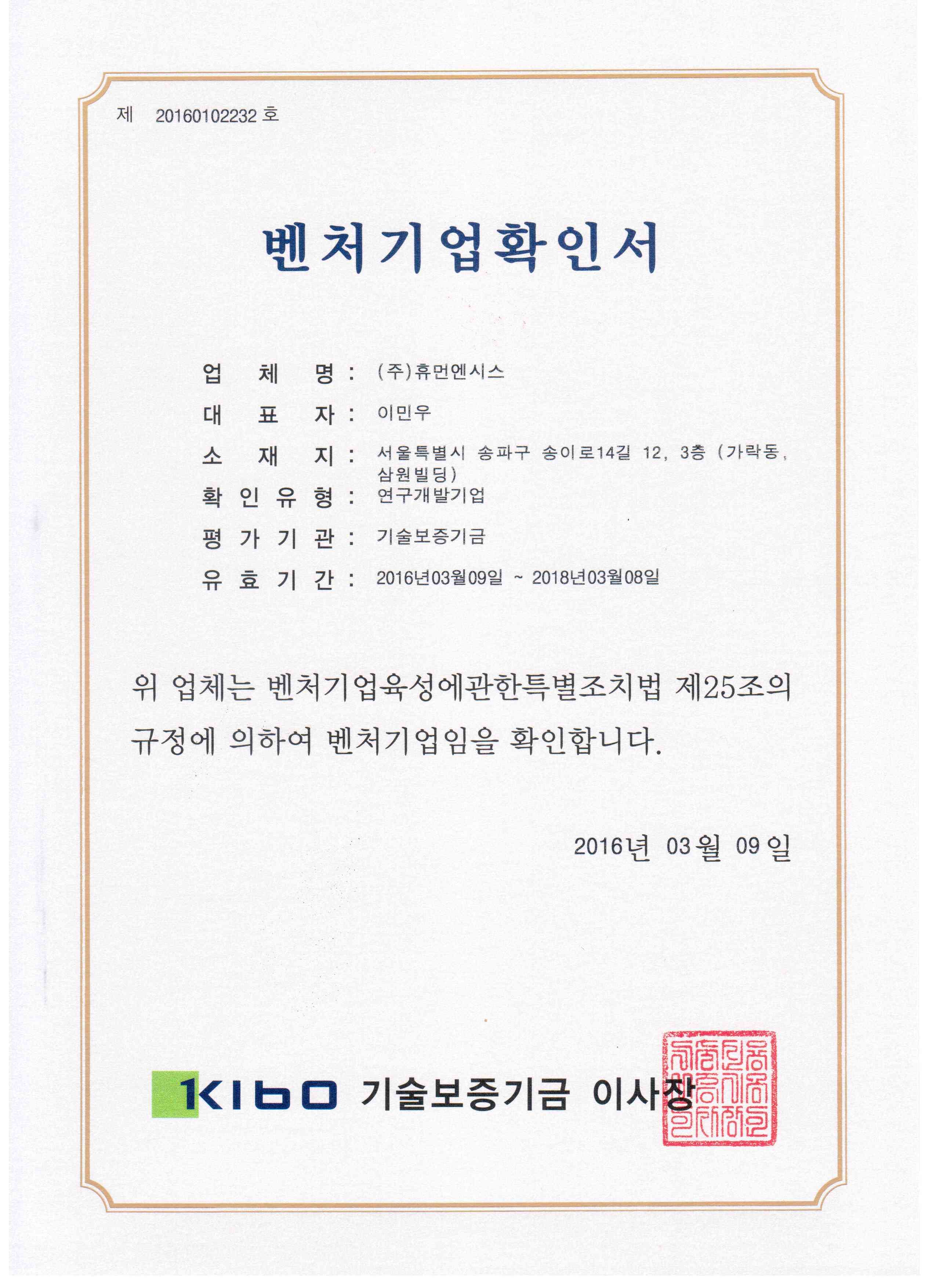 | (주)휴먼엔시스, 벤처기업 인증 | 휴먼엔시스 | 2016-03-14 오전 8:51:52 | |