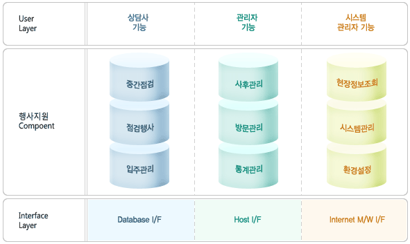 행사지원시스템은 최근 건설 경기에 대한 정부의 각종 규제 및 부동산 시장 억제 정책에 따른 시장환경의 어려움과 더불어 인터넷의 보급으로 인한 주택 계약자 및 입주자들의 의식 고취에 따라 고객의 성향 및 패턴의 이해와 상품에 대한 고객의 Needs 파악이 건설업계에서의 필요성으로 대두되게 되었습니다. 이러한 환경에서 주택사업과 관련된 고객 접점 시점에 해당하는 각종 행사수행(중간점검/ 사전점검/ 입주행사) 시 고객에 대한 이해와 한 차원 높은 고객 서비스 수행을 통하여 고객만족도 극대화 및 브랜드 인지도 향상을 위하여 체계적인 행사 수행에 필요한 시스템의 필요가 대두되게 되었습니다. 행사지원시스템은 이러한 건설 행사 수행 환경에서 업무의 효율성을 높이기에 가장 적합한 활용 솔루션입니다. |